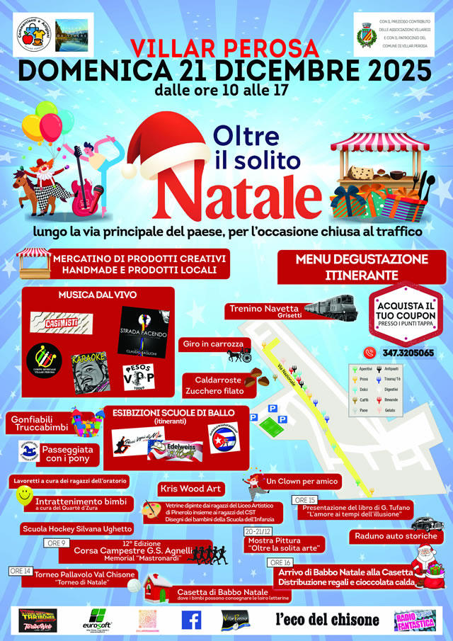 A soli 55 km da Torino, capoluogo del Piemonte, Villar Perosa - in Val Chisone - è il luogo per vivere nella natura ed è ideale come punto di partenza per escursioni e itinerari in mountain bike o trekking, per apprezzare le nostre valli assaggiando i piatti tipici della nostra tradizione locale.